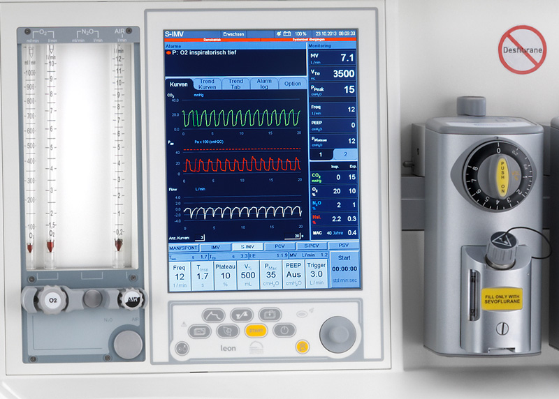 - Мультигазовий аналізатор автоматично визначає вміст кисню, вуглекислого газу, закису азоту та інгаляційних анестетиків.