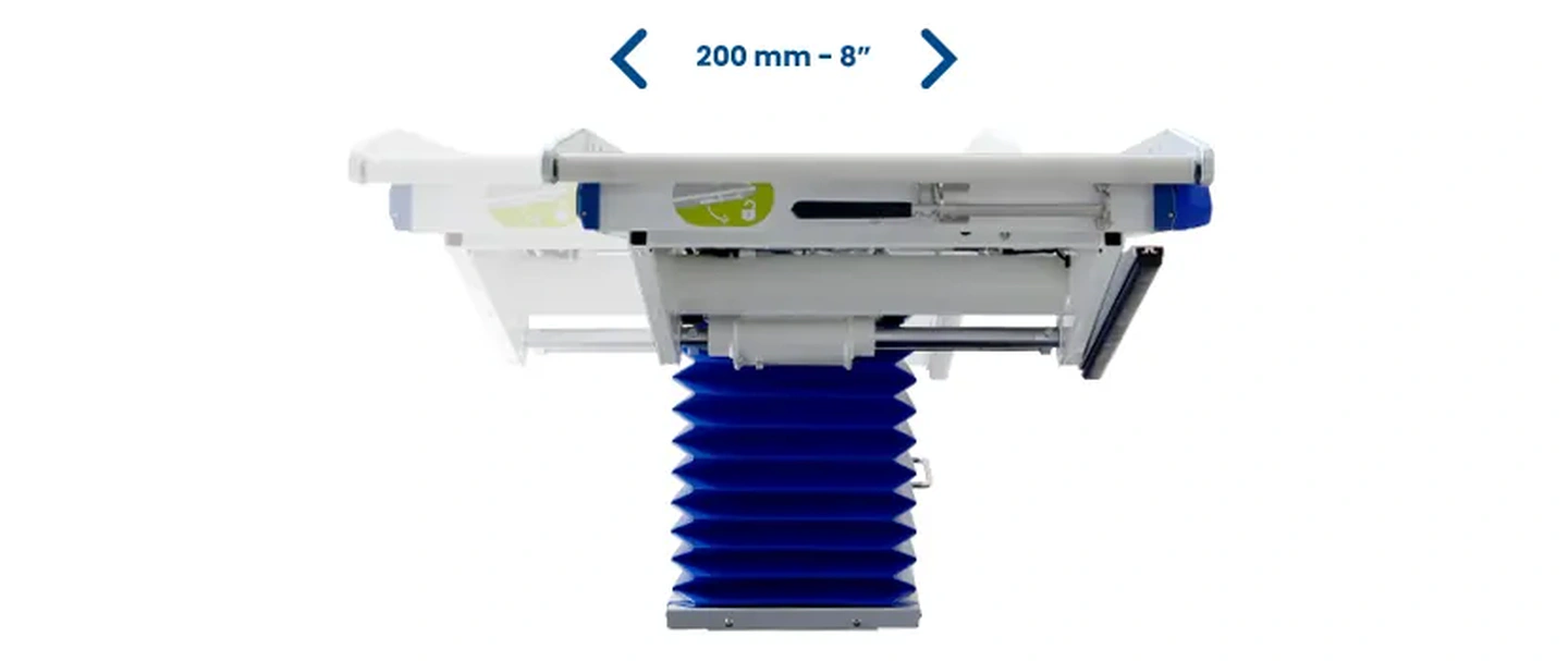 Передбачені нахил, регулювання висоти й бокове зміщення платформи, Bluetooth-зв’язок та можливість транспортування чутливих, неонатальних і політравмованих пацієнтів.