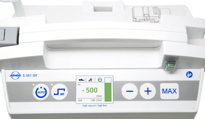 ATMOS S 351 OT запобігає пошкодженню тканин, що легко травмуються. При досягненні попередньо встановленого максимального значення вакууму відбувається відкриття клапана і система переходить в режим очікування.