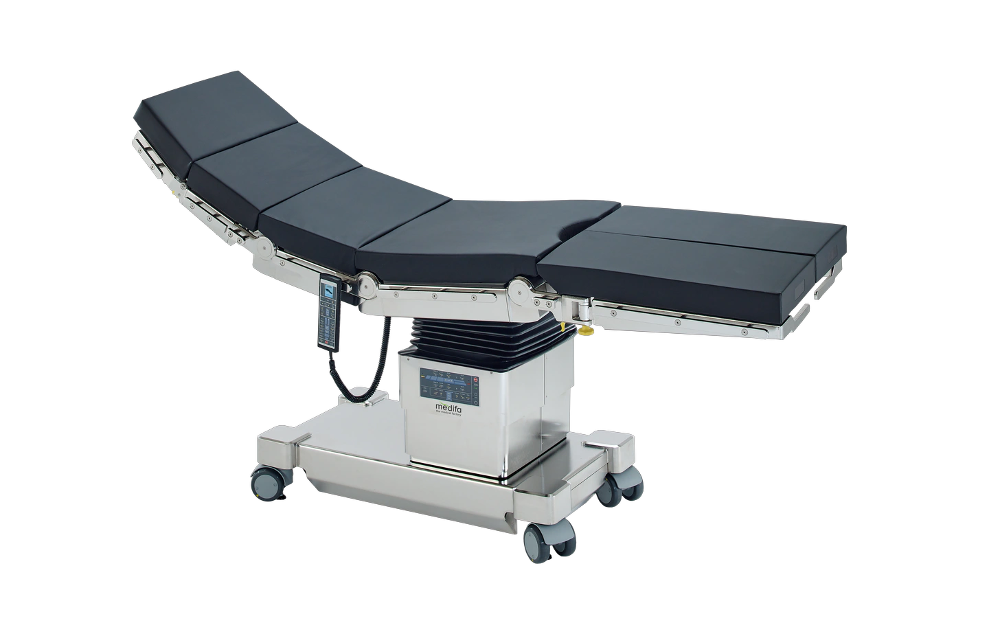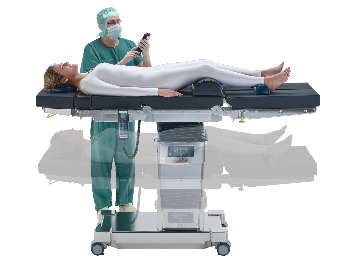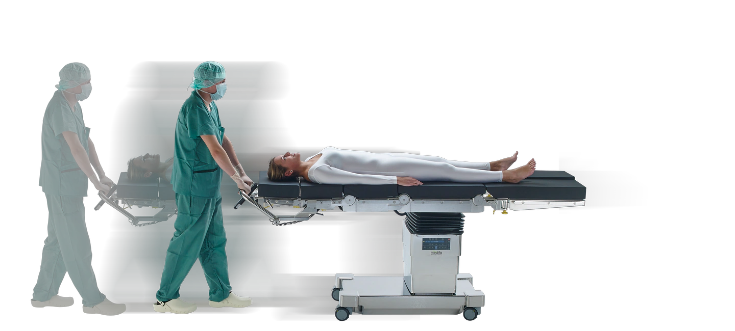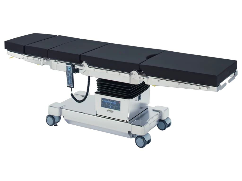 Мобільні операційні столи Medifa 7000 доступні у двох різних моделях, які оснащені електромеханічними основними функціями регулювання висоти, положень Тренделенбурга, латеральних нахилів, секції спини та ніг, а також гнучкості та позиціонування пляжного крісла, та поздовжнім слайдингом.
