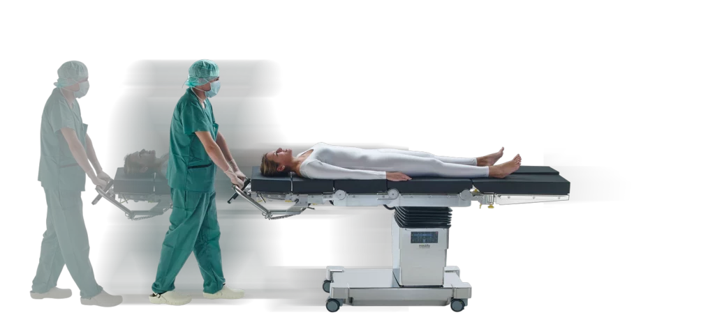 Мобільний операційний стіл 7000 серії відрізняється оптимальною висотою основи, простотою у використанні та надзвичайно високою вантажопідйомністю (максимальне навантаження 544 кг), тому цей операційний стіл відповідає найвищим вимогам до операційної.