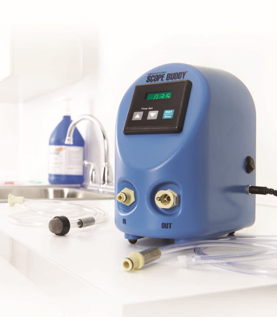 SCOPE BUDDY — пристрій для промивання ендоскопів призначений для промивання каналів гнучких ендоскопів водою, для ополіскування миючими розчинами та дозволеними дезінфікуючими засобами кімнатної температури при повному зануренні їх у відповідний розчин.
